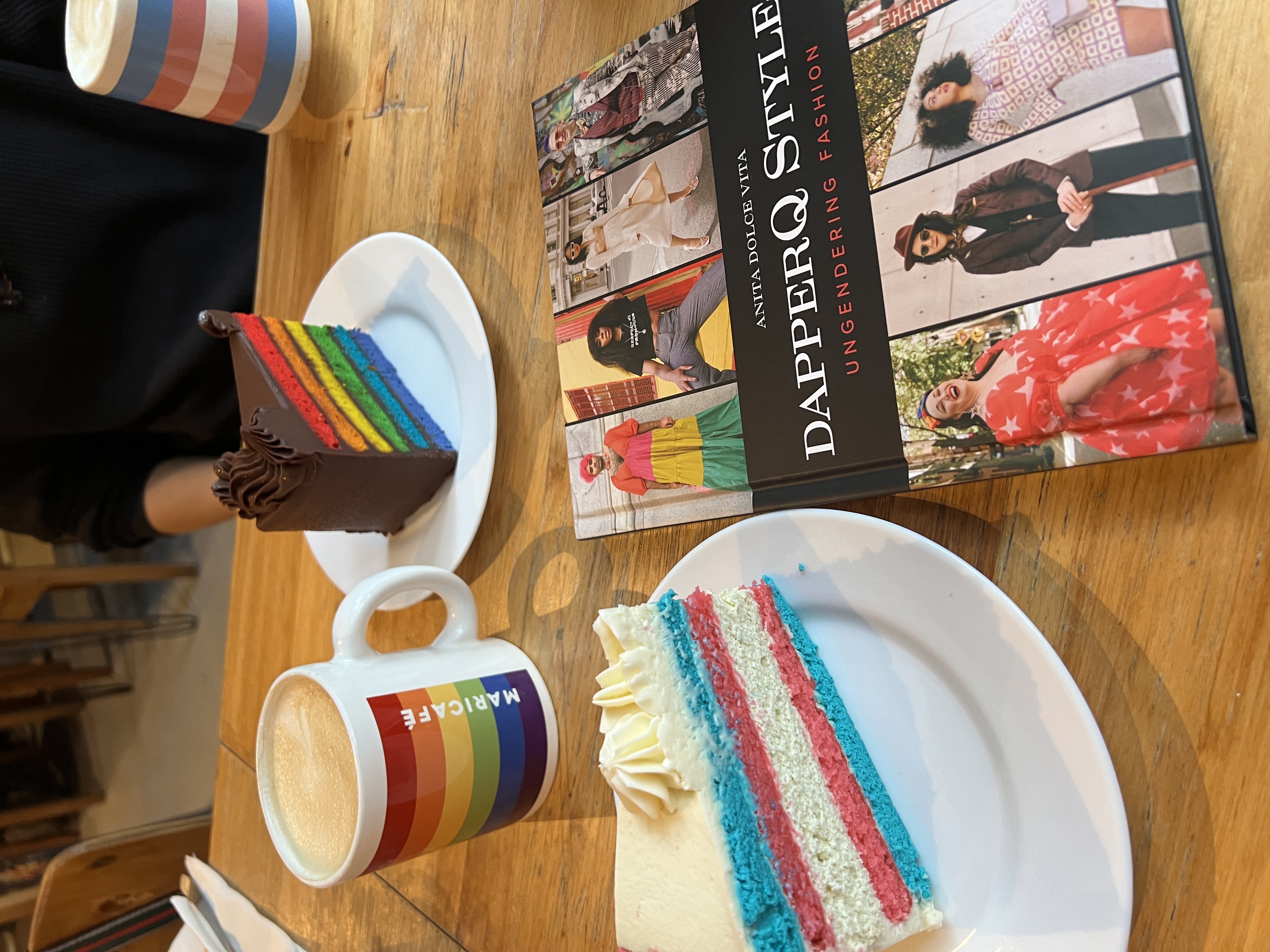 More than a café, Maricafé is a cultural anchor. Queer literature, drag performances, and community are the focus here. Seeing dapperQ’s book on the shelves here was so meaningful to me, knowing that the fashion, models, and voices in the publication are part of a global conversation and an archive of LGBTQ+ history.